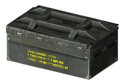 5mm is traditionally belt-fed, and is available in rather high quantities, something made necessary by the notably large "magazine" sizes on the weapons that use it—for example, the minigun loads 240 rounds at one time and fires an exceptional rate, meaning to be used effectively large amounts are often required.