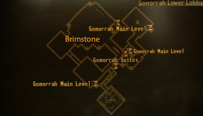 Ein Aufzug zur Linken der Bar führt in die Untergeschoss. Eine Tür (durchschnittlich verschlossen) rechts der Bar führt zum Zoara Club. Ein Schlüssel dafür kann von Cachino erhalten werden. Oder die Wache neben der Tür kann überzeugt werden, den Spieler durchzulassen. Hinter der Bühne führen Doppeltüren zum Hof des Gomorrah.