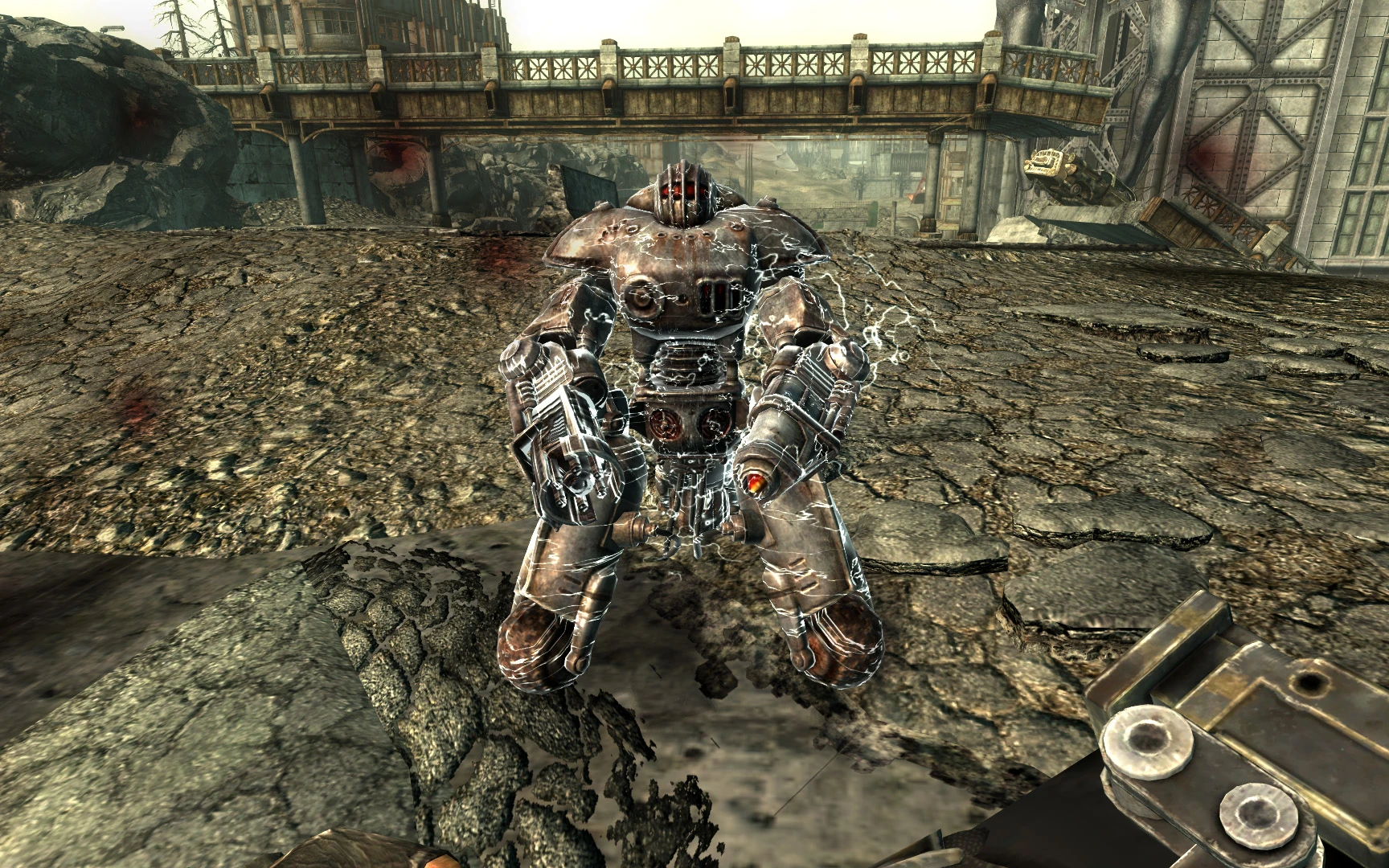 Fallout 3. Es ist eine einzigartige Version der Powerfaust, die zusätzlichen elektrischen Schaden an Roboter austeilt.