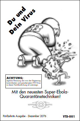 Designated VTD-001, this book covered survival strategies and other information useful in case of a pandemic. Fifteen issues have been published, with the latest one in December 2076. Among many, this pamphlet contained the latest quarantine techniques for Super Ebola containment as well as a popular "How-To-Burn-Diseased-Bodies" section.