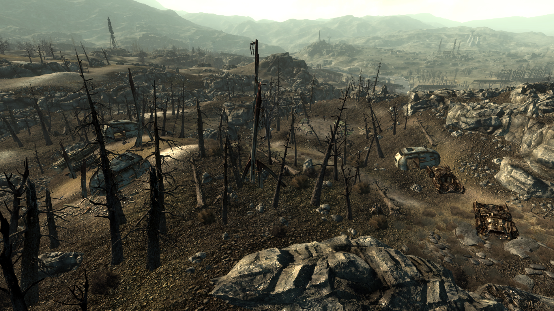 - Wenn man den Wohnwagen mit dem Skillbuch betritt, startet auf der Außenseite ein kleiner Kampf zwischen Supermutanten und Raidern.