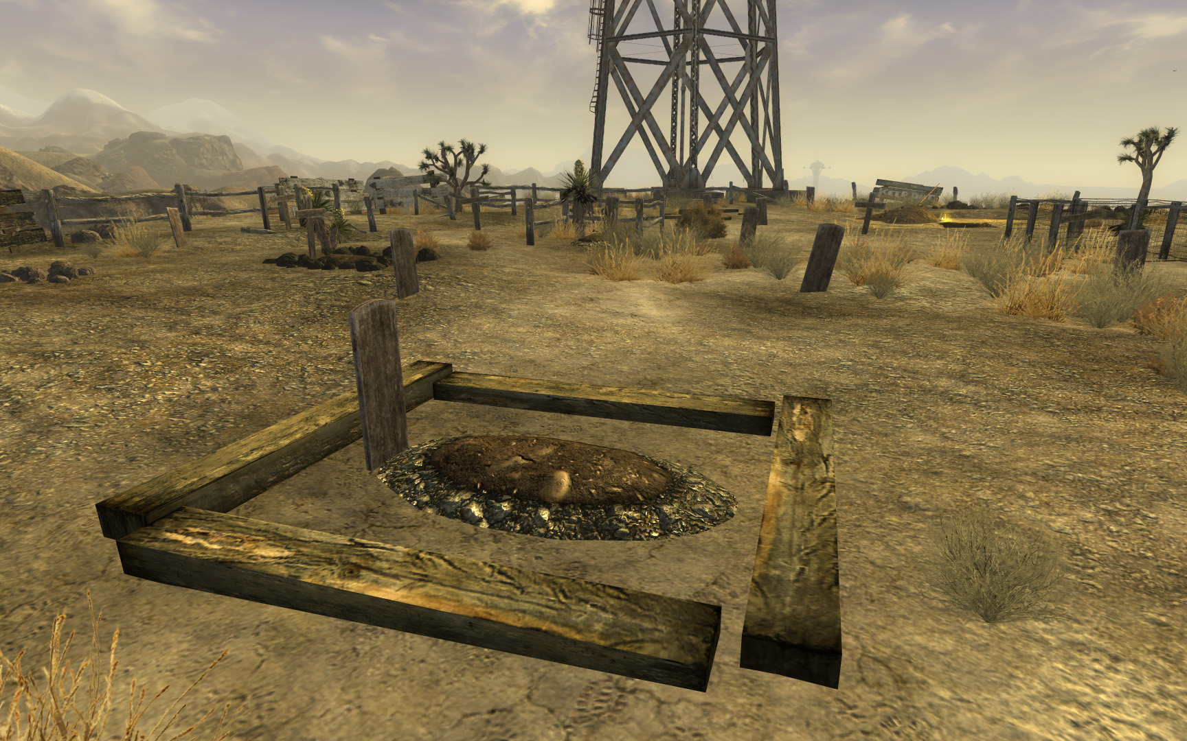 Das Ziel ist ganz einfach. Der Spieler muss sich eine Schaufel besorgen und die Gräber auf dem Goodsprings-Friedhof ausheben, um an etwas Beute zu gelangen. Anders als bei Fallout 2, hat das keine Auswirkung auf den Ruf.