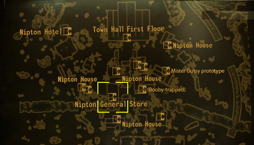 Der Laden hat zwei Etagen. Boxcars (der die Quest Rausgeworfen startet) sitzt auf einem Sessel im Erdgeschoss umgeben umgeworfenen Lebensmitteln. Open, gibt es hinter einer verschlossenen Tür ein verlassenes Apartment mit einem Safe. Oliver Swanick kann manchmal hier angetroffen werden, wenn der Kurier ihn nicht schon vor der Stadt getroffen hat.