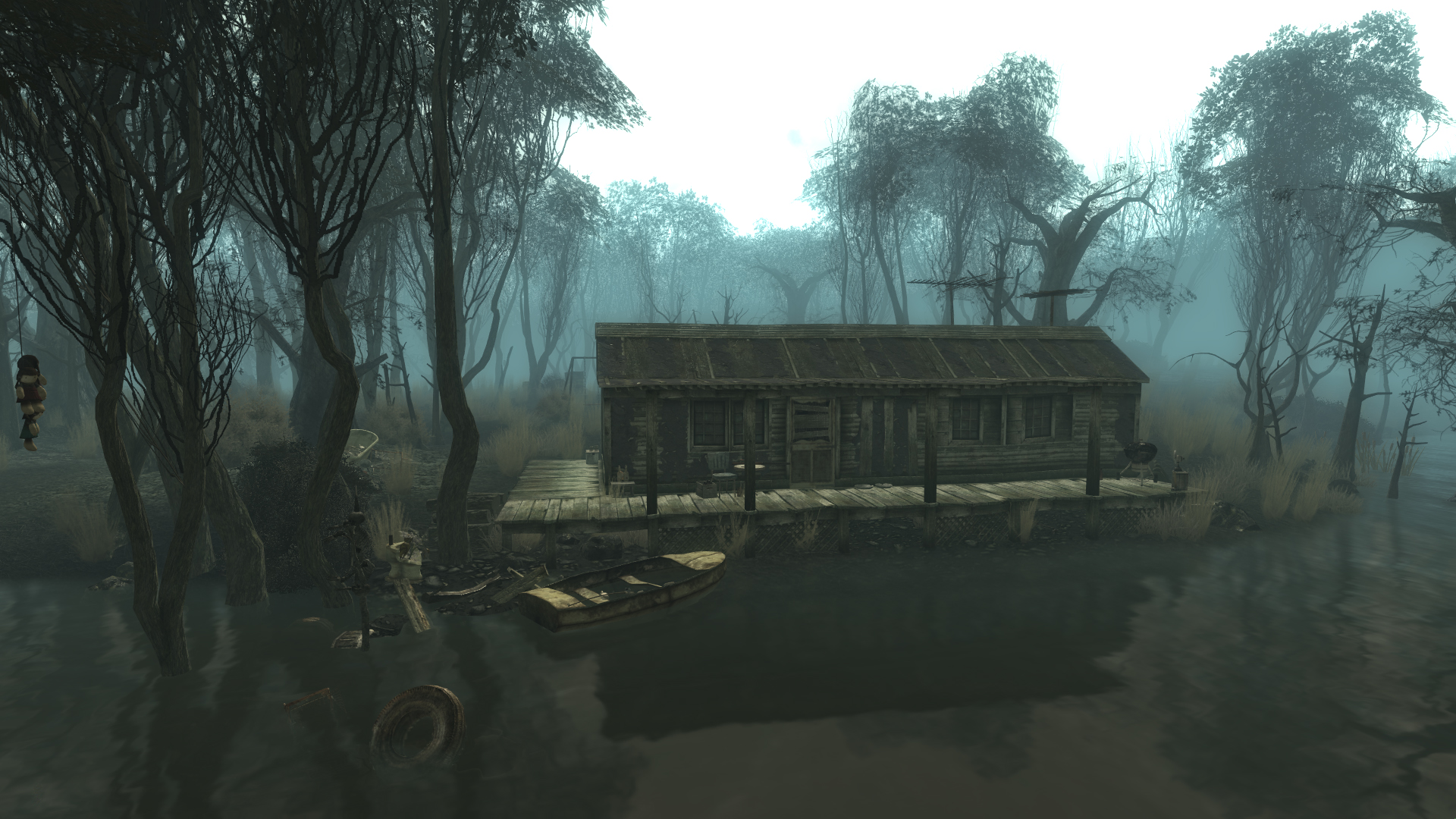 Es ist ein rechteckiges Gebäude, dass einem Wohnwagen recht ähnlich sieht. Sumpfbewohner lauern in der Umgebung. Der Garten ist dekoriert mit Puppen und Knochentotems.