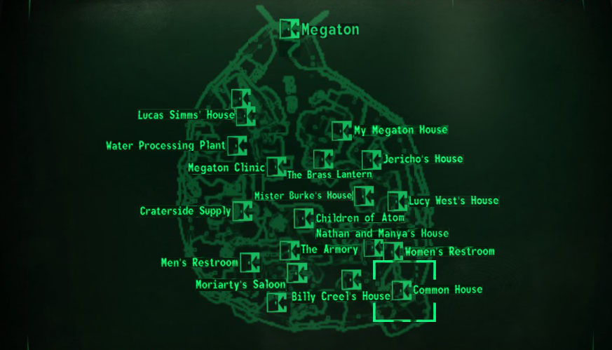 Alle Bewohner des Gemeinschaftshauses stehen unter permanenter Kontrolle durch Lucas Simms. Sie leben dort so lange, bis sie sich ein eigenes Haus zusammengespart haben. Sie sind keine vollwertigen Bürger Megatons und werden von vielen dementsprechend behandelt.