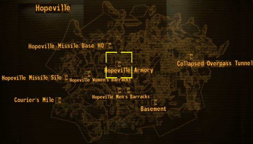 Das Hopeville-Waffenhaus ist ein unmarkierter Ort in der Kluft aus dem Fallout: New Vegas Add-On Lonesome Road.
