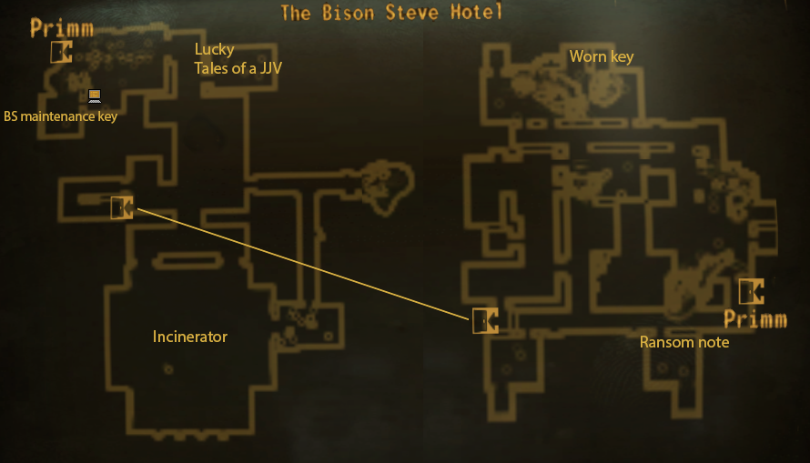 - Bison Steve Wartungsschlüssel - On the table in the Hard locked storage room imediately to the right when entering.