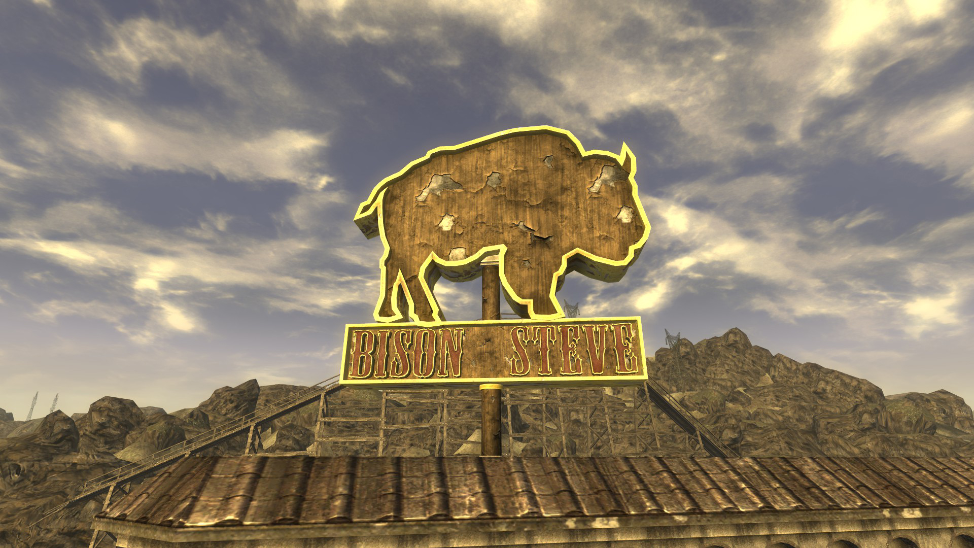Das Schild über dem Bison Steve