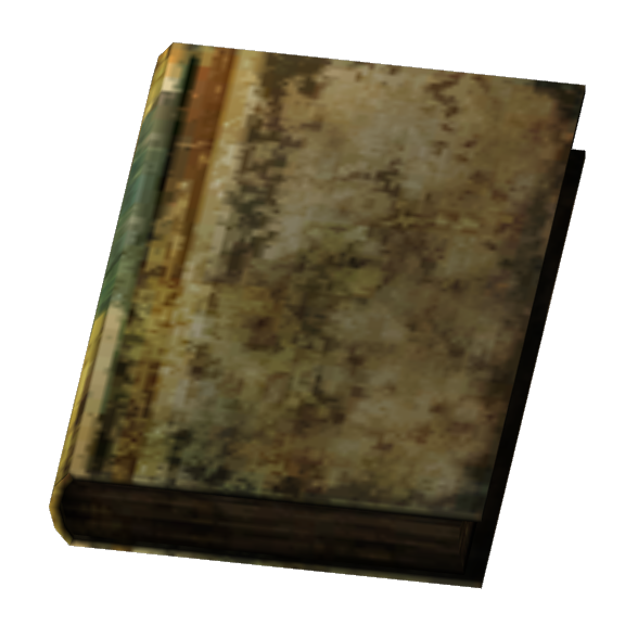- Kleine versengte Bücher befinden sich manchmal in Holzkisten, wo sie Medizin, Skillbücher oder Stimpaks verdecken.
