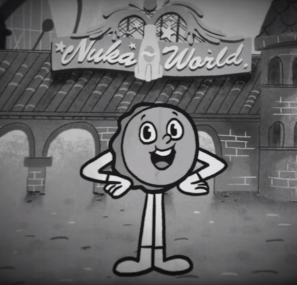 Korki ist einer der zwei Maskottchen der Nuka-Cola Corporation in ihrem Vergnügungspark, Nuka-World, in 2077.