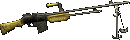 Das Leichte Maschinengewehr ist eine vollautomatische Waffe im Kaliber 5.56mm. Es hat eine hohe Kadenz und das Magazin fasst 90 Patronen. Die Streuung ist moderat bei ausreichendem Schaden. Die Verwendung der Visierung verringert die Streuung merklich.