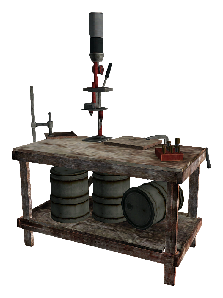 - An einer Nachladebank kann man leere Hülsen per Hand nachfüllen, indem man diverse Rohmaterialien verwendet. Die Patronentypen, die erzeugt werden können, hängen ab von: