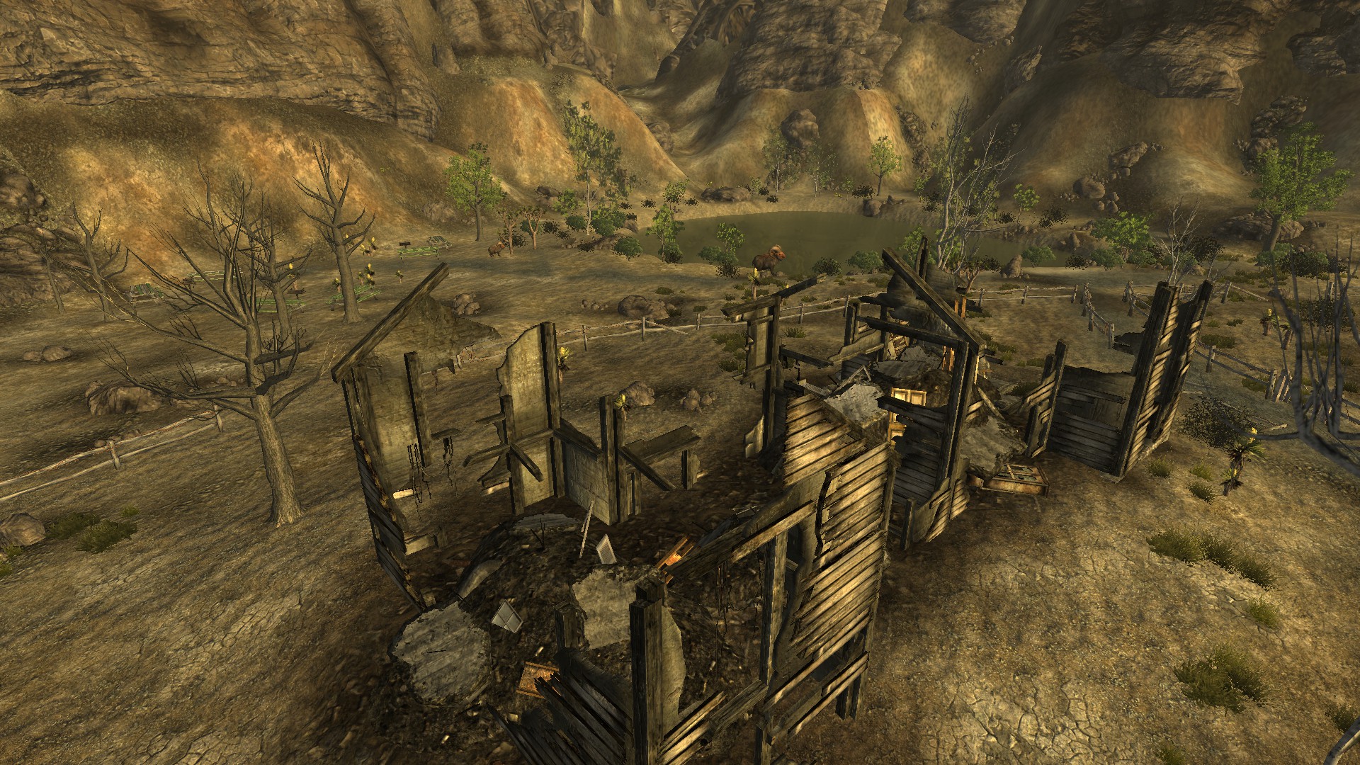 Wenn man ankommt, wird man wahrscheinlich schon von Riesenschrecken und Cazadoren angegriffen, die um den See herumlungern. Man findet außerdem ein paar Großhörner, von denen die meisten feindlich sind, wenn man ihnen zu nahe kommt (außer man hat das "Tierfreund"-Perk). Um den See herum stehen einige grüne Büsche und mehr oder weniger gesunde Bäume. Direkt vor dem See steht ein abgebranntes Haus, wo man einen Kleiderschrank mit ein wenig Beute finden kann.