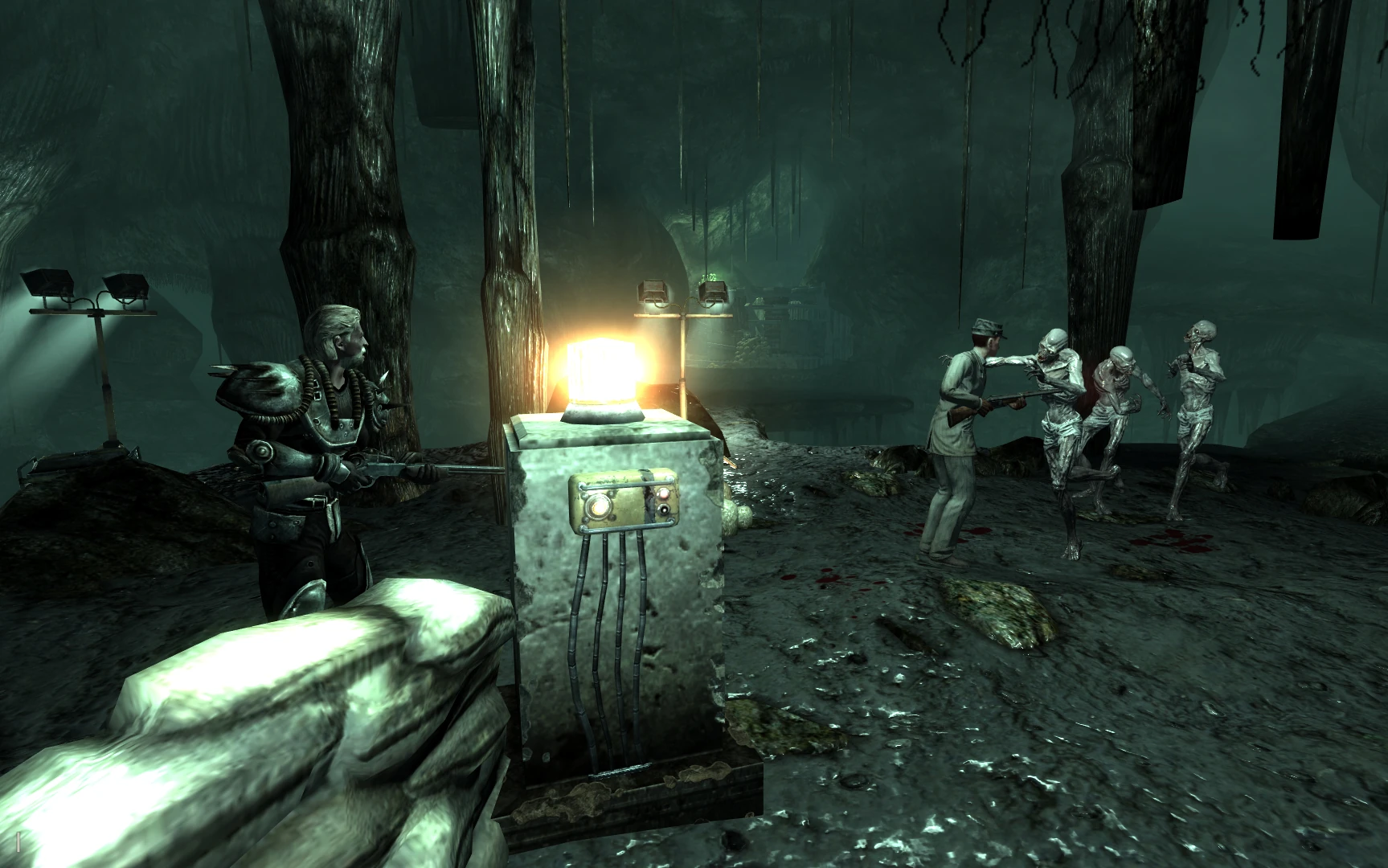 - Manchmal erscheinen keine Ghule mehr und man steckt in der Höhle fest. Man kann die Ghule durch einen Konsolenbefehl wiederbeleben und sie noch einmal töten. Danach erscheinen weitere Ghule und greifen an.