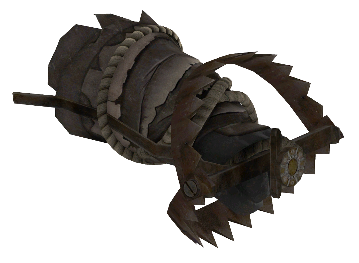 The bear trap fist is an improvised 'power fist'-like weapon employed primarily by the Ghost people of the Sierra Madre. The device is bolted to the forearm in such a way as to hit the target with the trigger plate of the trap, causing the jaws to snap shut on the victim.