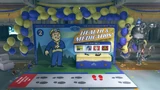 Wenn man die vierte Station und den Mister Handy Merriman erreicht hat (wo man den Partyhut aufsammeln kann), geht man zunächst nicht in die Richtung, in die der Pappaufsteller zeigt. Stattdessen geht man links am Vault Boy vorbei und betritt das Büro der Aufseherin, wo man ihr Terminal aktivieren muss.
