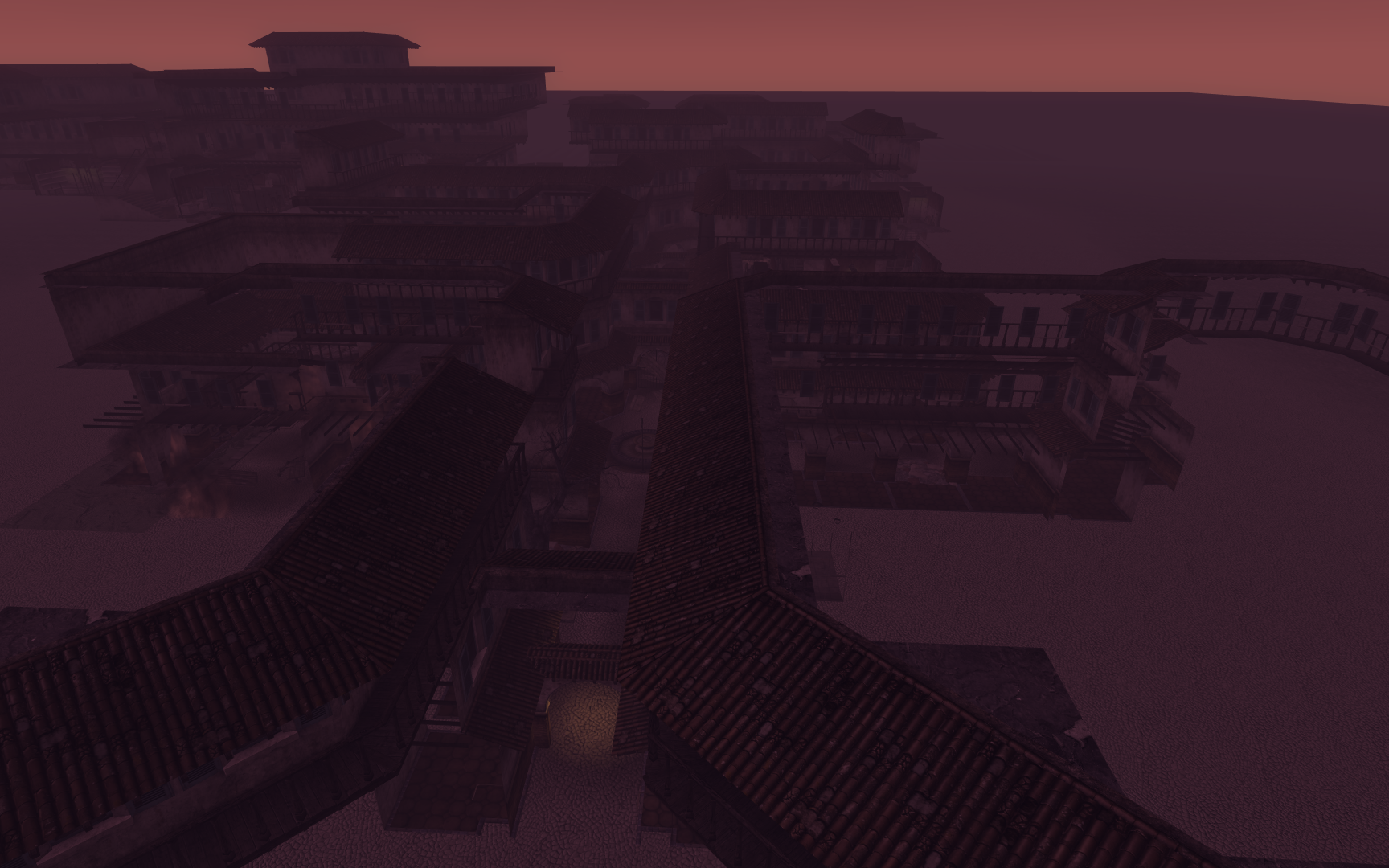 The courtyard is a part of Salida del Sol Nord, the other part being Campanas del Sol. The courtyard is a square cross shaped area with a defunct fontain at the center. It has two exits to Salida del Sol Süd. The west exit has a skeleton with the entrance key near to it, with buildings three stories high, and the exit in the northeast corner has a dining area in the basement.