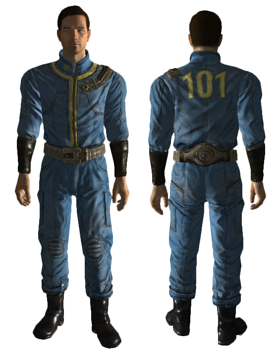 Die Overalls von dem Geheimen Vault haben keine Nummer auf der Rückseite und die Overalls von Vault 0 sind grau gefärbt. Vault-Bewohner, die ihren Vault verlassen haben, hängen an ihrem Overall und verstärken ihn mit Schulterpolstern und anderen Verteidigungsmitteln, anstatt ihn gegen eine andere Kleidung einzutauschen.