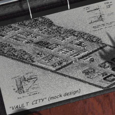 Vault 8 war einer der wenigen Vaults die tatsächlich zum Erhalt der Menschheit konzipiert waren. Obwohl die Vault bereits 13 Jahre nach dem großen Krieg geöffnet wurde war sie 2241 immer noch in exzellentem Zustand. Alles in der Vault ist noch sehr gut erhalten, vom Aufseher-Schreibtisch bis zur Seal'n'Safe Vault Tür. Dank der Fusionsreaktoren in der Vault [1] ist Vault City's Stromversorgung autark doch die begrenzte Kapazität begrenzt auch die Expansionsmöglichkeiten der Stadt sehr stark. Der Großteil der Vault steht leer und wird eigentlich nur als Lagerraum genutzt. Interessanterweise hatte die Vault zwei Türen: Einmal außen ein gewaltiges schweres Schutztor und weiter innen im Berg eine standardmäßige Vault-Tec Seal'n'Safe Schutztür.