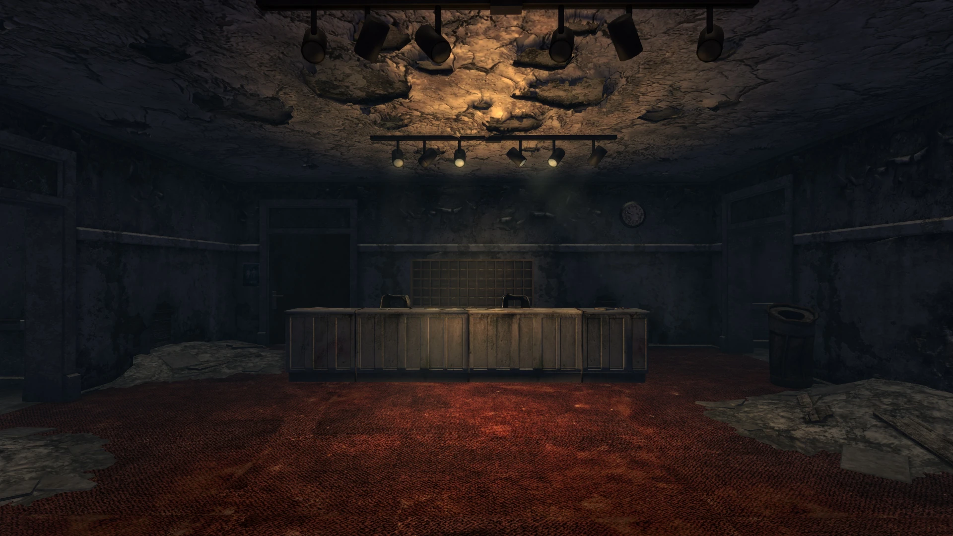 The entrance is the main lobby of the clinic. One of Dean's secret stashes is found in the southeast corner, behind some red chairs. A hologram security terminal is next to the door, and can alter the security parameters of the clinic. Behind the reception desk are the bathrooms. To the left of the entrance are stairs that lead to the second floor and to the right is the main hallway with examination rooms. The room on the immediate right is filled with mannequins with explosive collars attached, along with several headless corpses lying on gurneys. The assassin suit along with a cosmic knife is on a counter on the left side of the room. The hallway that branches to the left is the Auto-Doc wing, containing six Auto-Docs, and Christine. Continuing straight down the hall from the lobby leads to another stairway upstairs and a stairway downstairs to the basement.