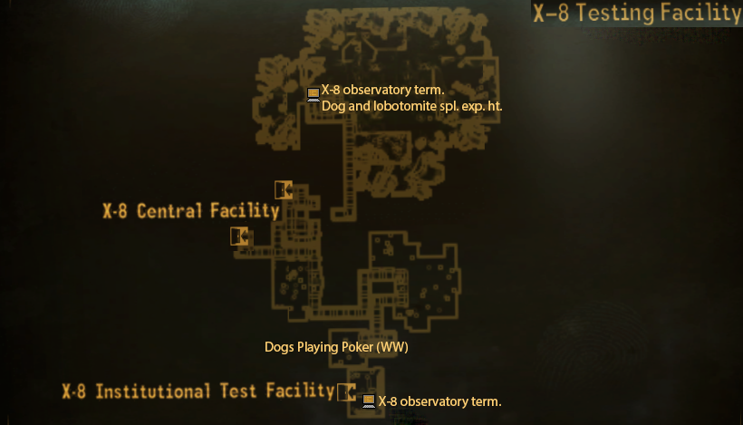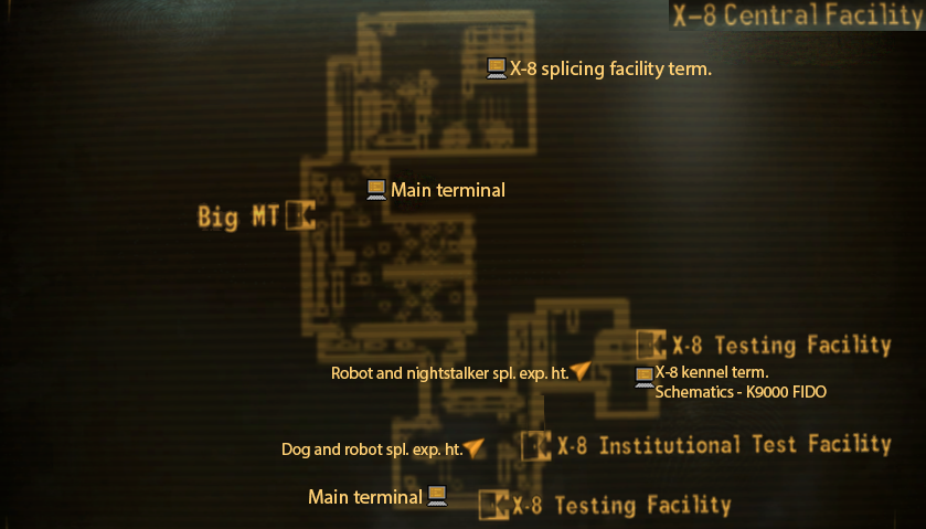 Geht man links am Eingang entlang kommt man zum X-8 Splicing Terminal, wo Kreaturen gespliced werden können. Das Gebäude beinhaltet außerdem seine eigene High School wo das Schallemitter EM Pulse Wave Upgrade gefunden werden kann, das dem Spieler erlaubt Kraftfelder (Blau leuchtende Felder nur in Big MT) zu deaktivieren.