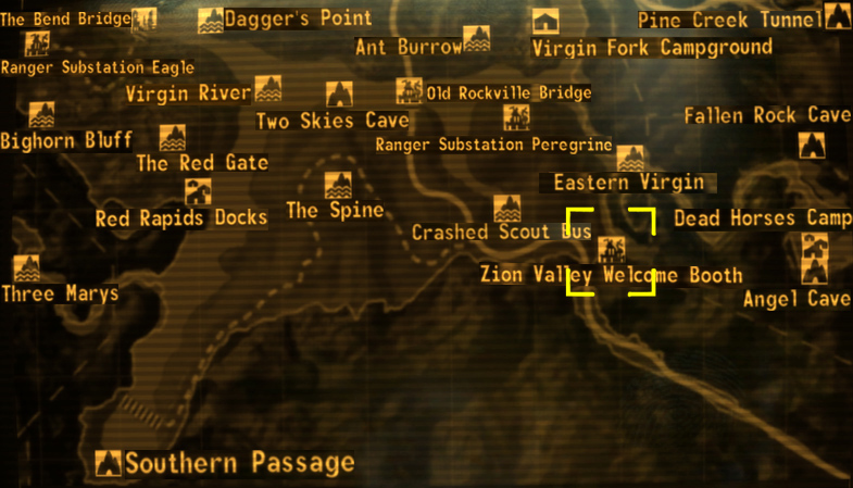 Der Zion-Tal-Empfangstisch ist ein Ort im Zion-Tal. Er liegt südlich des Eastern Virgin und östlich des zerstörten Scout-Buses. Vokommen tut er nur in dem Fallout: New Vegas Add-On Honest Hearts.