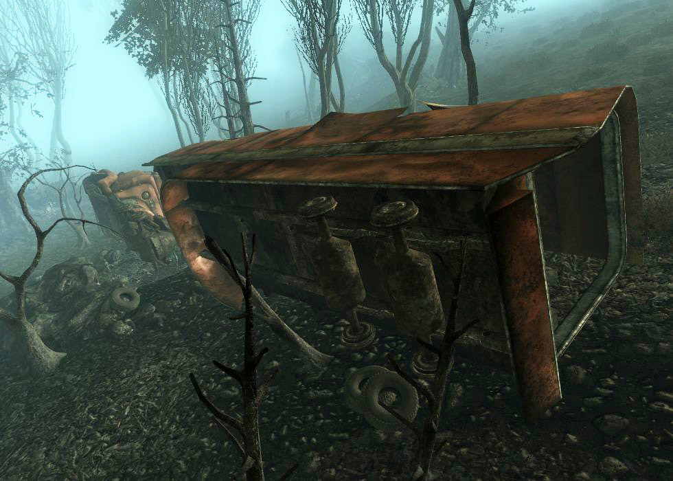 El accidente de camión solo aparece en el complemento Point Lookout de Fallout 3.