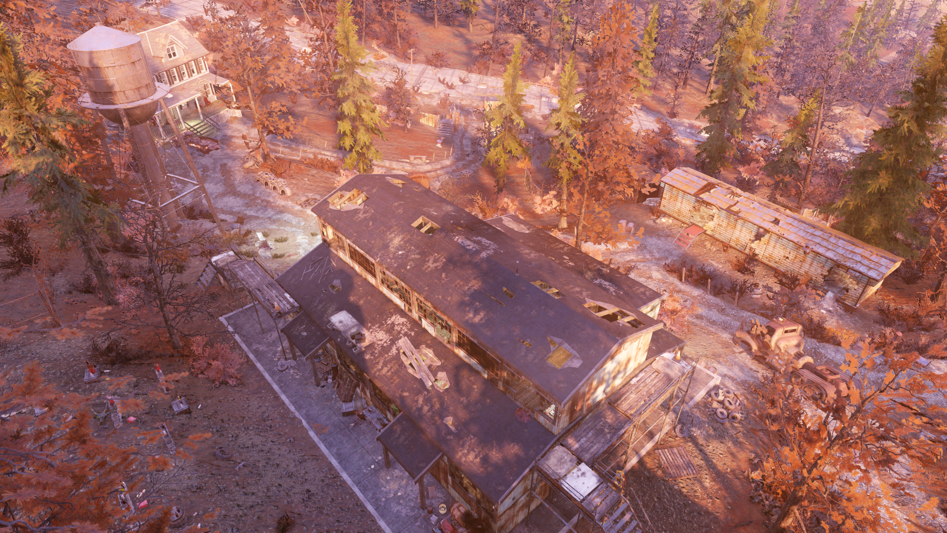 Al noreste del puesto de vigilancia más oriental, detrás de un árbol, yace el cuerpo de un habitante del Refugio 94. Hay un fogón cerca del remolque situado más al sureste. La terminal de Paulie Keith se encuentra en un tráiler con una Central química, así como una Central de elaboración.