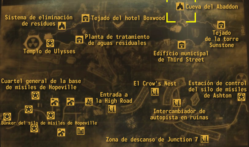 La cueva del Abaddon solo aparece en el complemento Lonesome Road de Fallout: New Vegas.