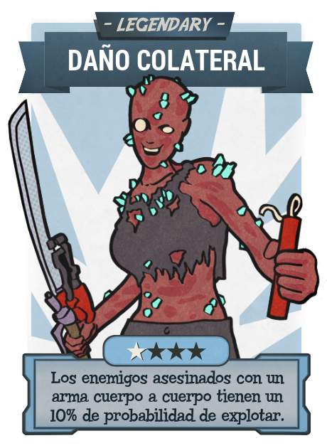 | 4 | Los enemigos asesinados con un arma cuerpo a cuerpo tienen un 20% de probabilidad de explotar. | 005A5E27 |
