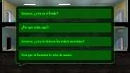 El próximo paso es ir a hablar con el supervisor en el último piso. De igual forma, se puede hacer uso de los ascensores o ir de sala en sala. Al llegar donde él, dirá a los moradores que nadie había descendido en décadas y fueron muy pocos los que lo lograron. Luego mencionará que fueron unos robots quienes construyeron el refugio, pero se averiaron y siguieron construyendo hasta que dejaron de funcionar. En esta conversación habrán cuatro opciones d diálogo; si se le pregunta que si este es el fondo dirá que más o menos, pero que los robots siguieron construyendo un poco más, si se le pregunta que por qué sigue aquí dirá que es un lugar muy seguro, si se le pregunta sobre los robots dirá que ese era el experimento, hacer que los robots hicieran todo el trabajo manual y la última opción es para decirle que su hermano lo extraña, a lo cual responderá que lo irá a visitar en primavera.