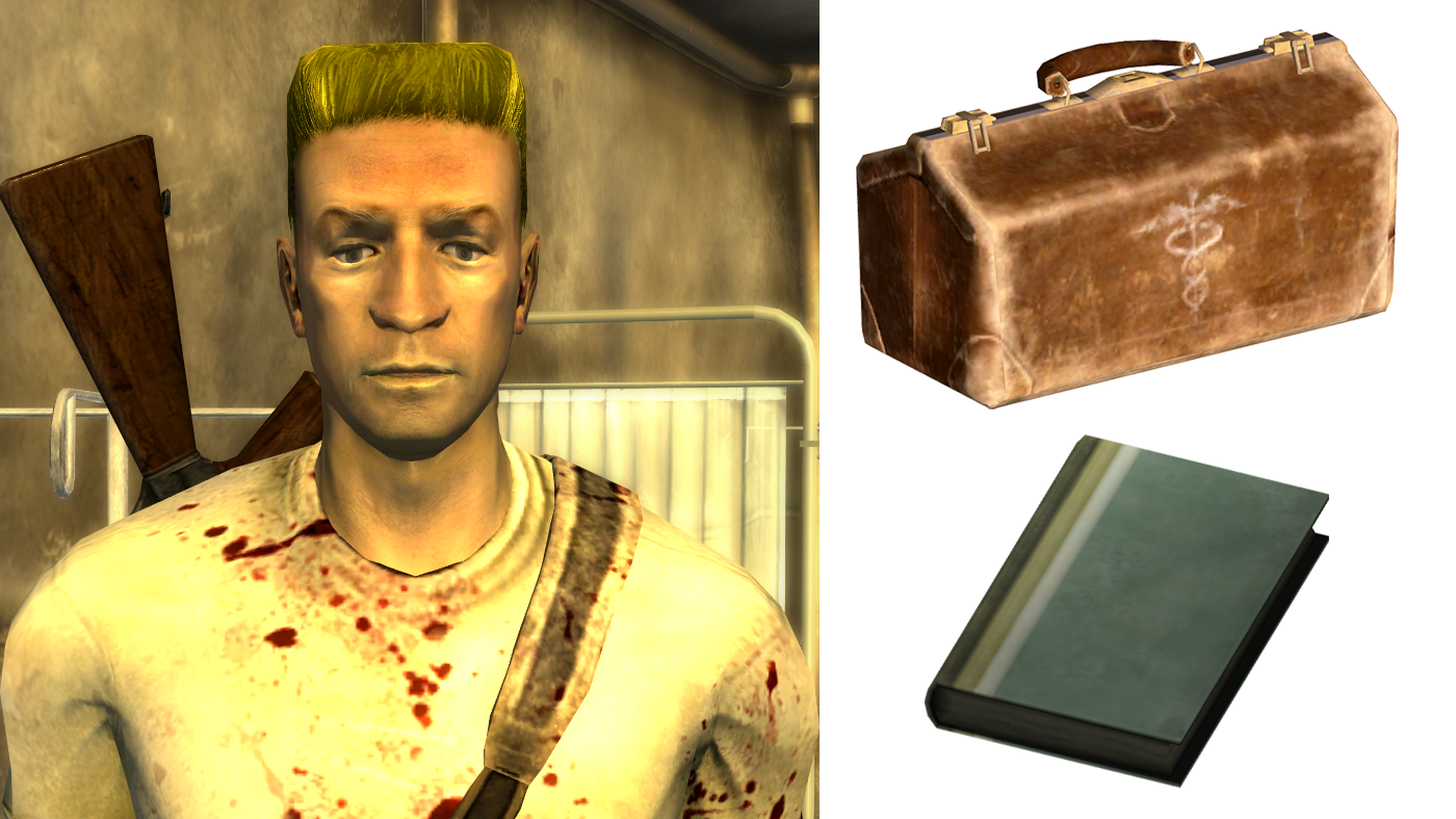 - Llévale al teniente Markland tres bolsas de doctor: Se pueden conseguir relativamente fácil en el Mojave , además de ser compradas o fabricadas por el jugador. Una vez que tengas las bolsas tendrás la opción de entregarle una, dos o las tres juntas.