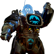 Explora el Yermo en busca de amenazas nuevas y clásicas en el papel del Ranger Atómico. Se trata de un diseño exclusivo que cambia por completo el aspecto de tu servoarmadura. Se puede aplicar en las servoarmaduras excavadora, de saqueador, T-45, T-51, T-60, de ultracita y X-01.