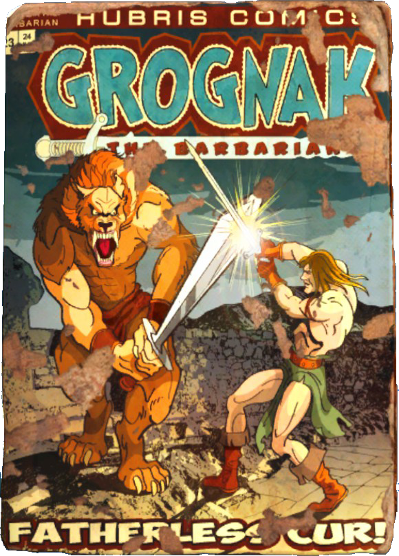 ↑Robert MacCready: "Si encontrase el número en el que Mastadonald y Craneocalipsis se juntan para luchar contra Grognak, tendría la serie completa." (Diálogo con Robert Maccready en Fallout 4)