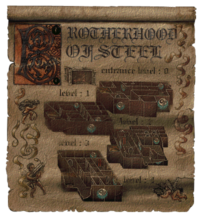 Al lado contrario del almacén se encuentra la cámara de entrenamiento, donde los iniciados ejercitan y aprenden habilidades de combate bajo la cuidadosa guía de los mejores luchadores de la Hermandad. El instructor jefe tiene su cuarto cerca. Hay dos otros instalaciones presentes en este nivel - la oficina y los aposentos del Maestro Paladín Rhombus y el cuarto de guardia, donde los guardias de la superficie ocupan su tiempo libre.