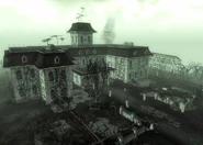 Nathan Purkeypile: "Grant is the one who actually made the actual effect. But the way it works is, like the most counter-intuitive thing you'll ever hear. 'Cause there's no way for us to toggle distant stuff in the Fallout games back then, like it was distant buildings, that's all there is, you can't turn one on or off. So the only similar thing though that's related was distant explosions, like y'know, the Megaton explosion. So technically speaking, the mansion itself is an explosion at all times. And it's slowly shrinking on itself and then spawning a new one, and then after the mansion actually explodes, that fake explosion that was just a mansion is then turned off. So it takes a second to wrap your brain around, but yeah, we used the 'explosion tech' to show a house that then gets turned off." - ↑ Modificación de Point Lookout en Fallout 4 con Joel Burgess y Nate Purkeypile (40:23)
