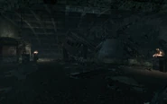 En el lado este del nivel inferior hay una jaula con el esqueleto de una persona. Las seis botellas de agua que rodean la jaula indican que probablemente fueron dejadas allí con la intención de mofarse del cautivo que moriría de sed e inanición sin poder alcanzar el preciado líquido. A la derecha hay una una cama provisional donde el jugador podrá descansar tras haber eliminado a los necrófagos salvajes de la zona, una taquilla y una caja de metal junto a un inodoro roto con una escopeta recortada y algo de munición. Otro esqueleto enjaulado cuelga sobre la taquilla, con algunas botellas de agua adicionales cerca.
