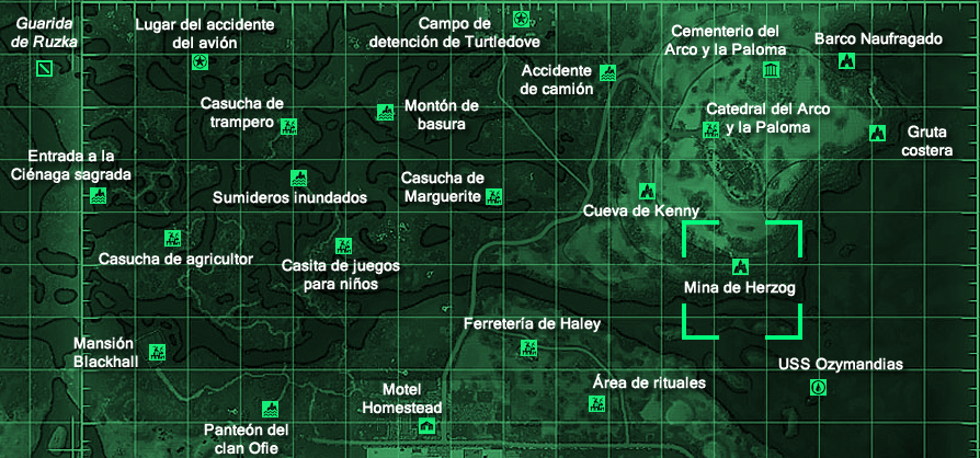 La mina de Herzog solo aparece en el complemento Point Lookout de Fallout 3.