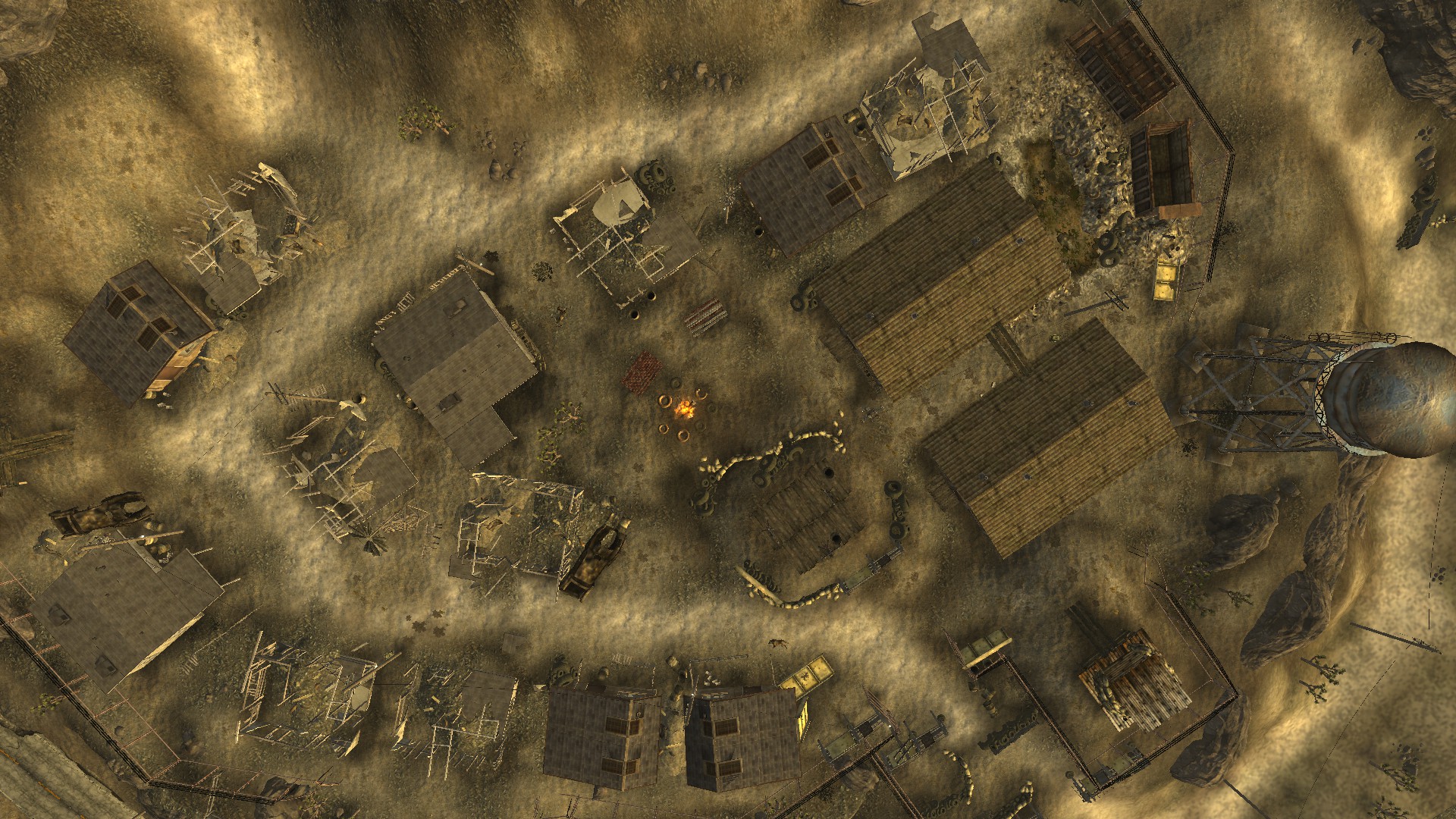 En la parte noroeste se encuentran los barracones, se trata de dos edificios de aspecto similar, en el edificio de la izquierda encontrarás los cadáveres de dos soldados de la RNC mientras que en barracón de la derecha hay el cadáver de otro soldado más y dos reclutas de la legión y su líder, Mar Muerto.