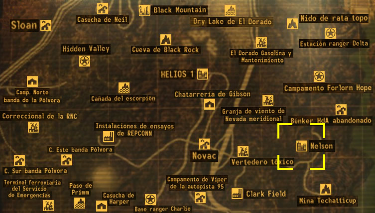 Hacia el noreste está la carretera principal de Novac que lleva hacia a Nelson, tiene un punto de control de rangers de la RNC donde el ranger Milo está intentando darle una muerte rápida a unos soldados crucificado en el pueblo. Pasando el punto de control, y luego de una pequeña curva, llegarás a la torre vigía del suroeste que marca el perímetro del asentamiento y la zona por la que se mueven tropas de la legión, próximas a la torre hay dos casas vacías donde podrás descansar.
