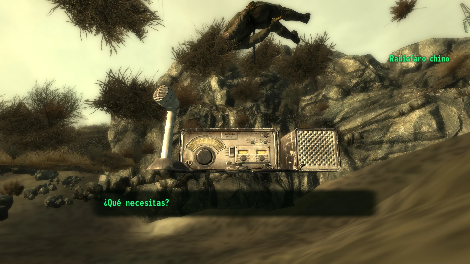 Si el jugador utiliza el comando de consola tcl, puede ir bajo tierra donde encontrará un equipo de radioaficionado con el nombre "Radiofaro chino", justo debajo del comando Chino muerto. El jugador puede interactuar con la radio tal como lo haría con cualquier otro personaje no jugador. Al interactuar con la radio, el jugador escuchará una voz que dice "Hola" o "¿Qué necesitas?" en español a través de la radio, a lo que la única respuesta disponible es "Tengo que ponerme en marcha" o "Hora de irme". Al elegir esto, el jugador escuchará "Sí, hasta luego" o "Adiós" o "Como veas" en español al terminar el diálogo. A diferencia de otras radios, esta radio no se puede apagar.