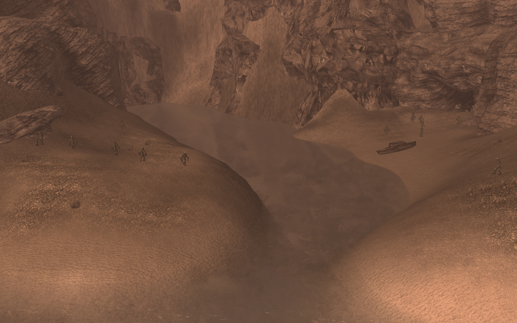 Cerca de un nicho pequeño dentro de un canal mayor hay una pequeña cueva poblada por 16 acechadores de lago por abatir. Comprueba luego la cueva en busca de objetos en el cadáver de un mercenario y dos sacos de dormir próximos a él.