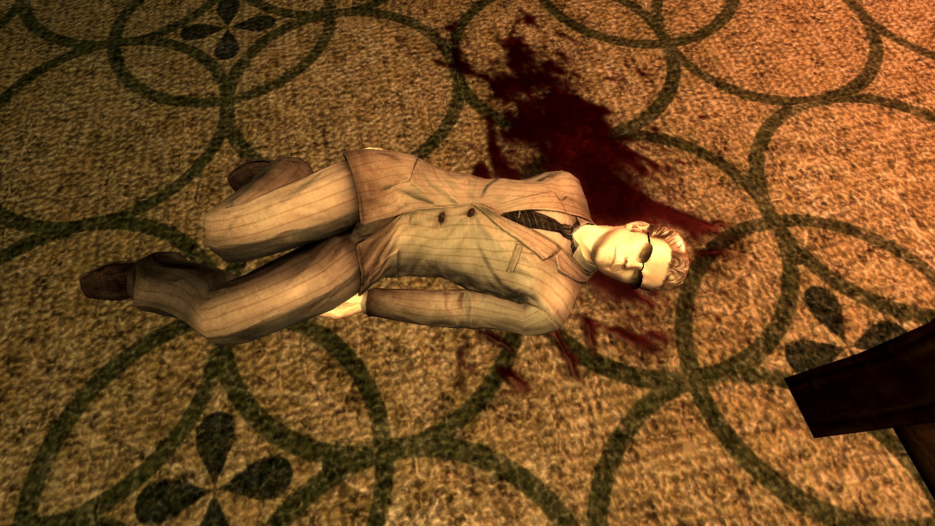 Suceso: Siguiendo la misión Más allá de la ternera al entrar en la habitación del detective llamado Crusoe, le encontraremos en el suelo muerto, la habitación muestra señas de pelea.
