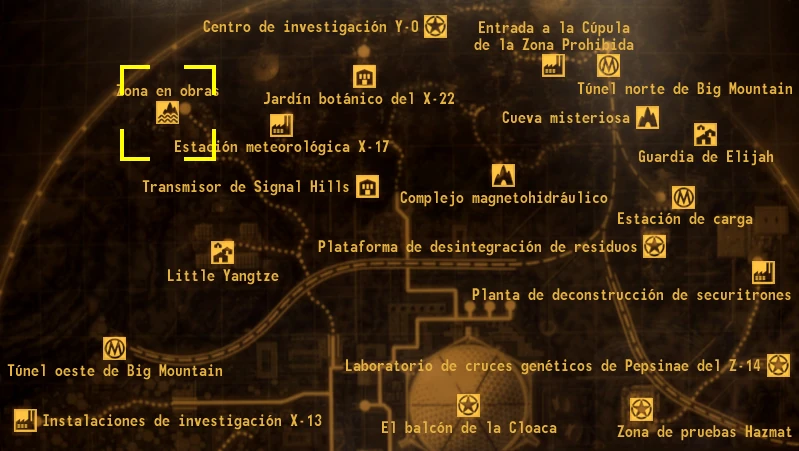 La zona en obras solo aparece en el complemento Old World Blues de Fallout: New Vegas.