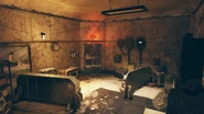 Un atelier de chimie et un établi de bricoleur se trouvent dans un coin, de l'autre côté d'une zone avec plusieurs consoles et une Carte de l'excavateur des Appalaches, sur une table. Une porte, à droite de l'escalier d'entrée, mène à une chambre contenant un poste d'armures assistées.