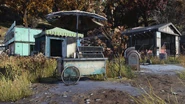 Mon histoire - Note, sur le toit du stand Farm To Food. Avant la mise à jour Wastelanders, la note était sur le toit du stand Jar Toss.