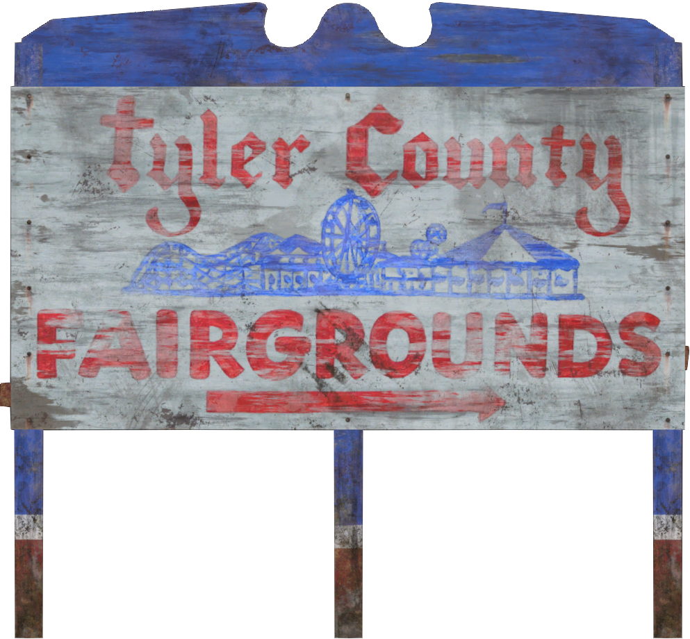 Le champ de foire du comté de Tyler est une grande zone herbeuse à travers la Route d'état 81 de la Piste du Comté de Tyler. Une série d'attractions festives était prévue pour l'évènement d'Halloween "Tyler County Scare!", dont les décorations peuvent encore être trouvées autour du lieu.[4][5]