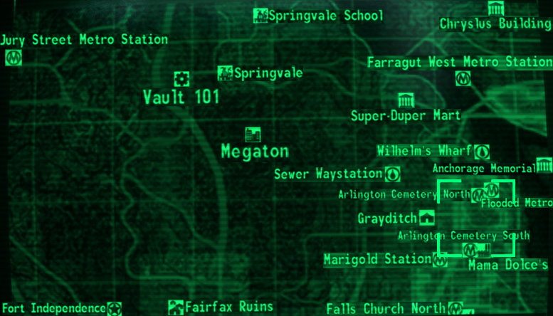 Le cimetière d'Arlington, auparavant Cimetière national d'Arlington, représente à peu près tout ce qu'il reste de l'ancien district d'Arlington. Au sud du cimetière se trouve l'usine Mama Dolce's, et à son centre la Maison Arlington. Avant l'holocauste, beaucoup de héros de guerre nationaux étaient enterrés dans son sol. Ce n'est désormais plus qu'un point vide et sans vie sur la carte.