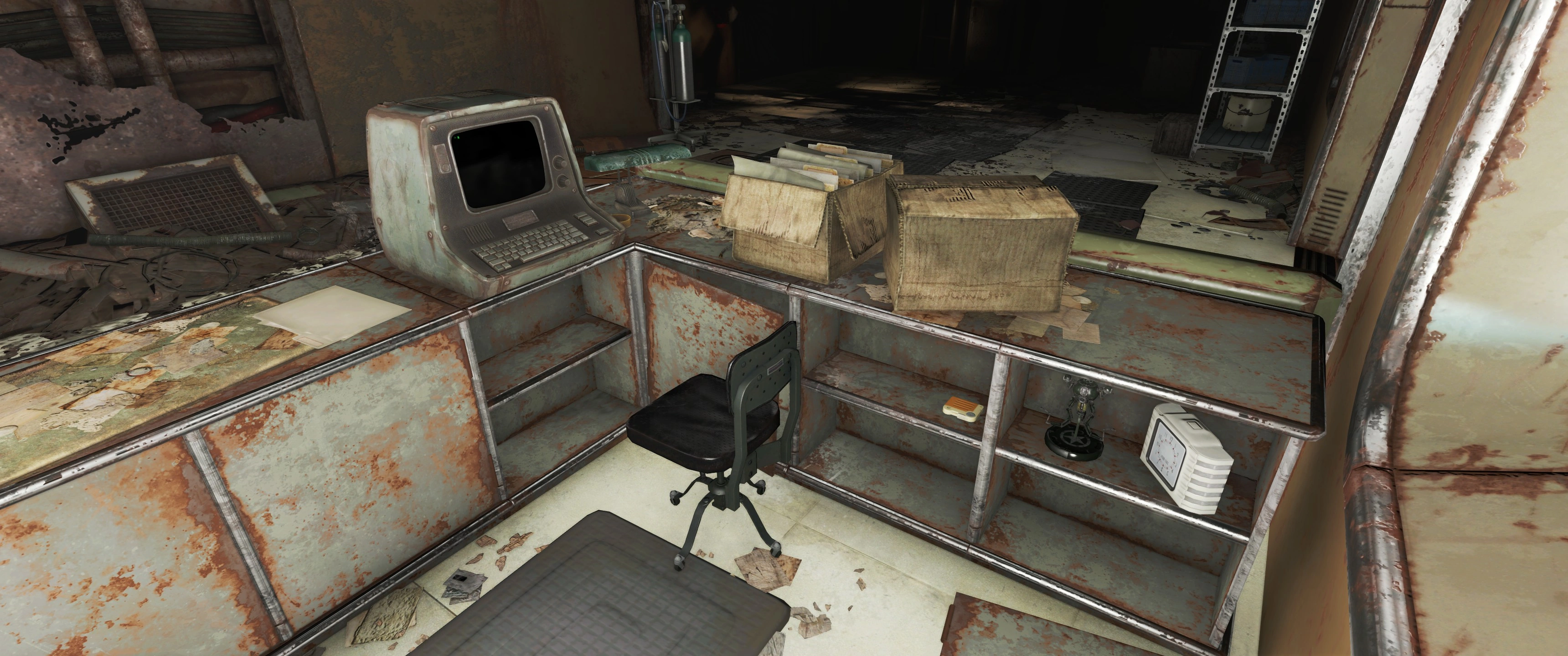Derrière le bureau du terminal de la station de surveillance, juste après être entré dans l'aile de recherche. | |