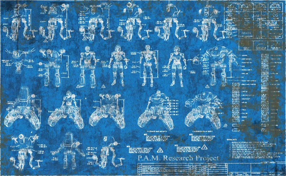 Le développement de P.A.M. débuta en 2067. Officiellement, il s'agissait d'un projet conjoint entre la DIA et l'US Army dans le but de développer un programme avancé d'intelligence artificielle capable de prédire avec précision les actions à venir, et ce à partir de données introduites dans ses systèmes par ses opérateurs humains. Mais en réalité, le principal motif des personnes travaillant sur P.A.M. était de développer une IA capable de prévoir et d'arrêter une guerre nucléaire avant qu'elle ne se produise. Afin de lui offrir une mobilité accrue, les scientifiques introduisirent P.A.M. dans le corps d'un Laserotron modifié, ce qui facilita le démantèlement et le déplacement de cette dernière en cas d'attaque ennemie.[1]
